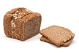Hafer-Dinkelbrot, Emmer-Dinkelbrot und Dinkel-Ganzkorn, geschnitten. Nährwerte je 100g: